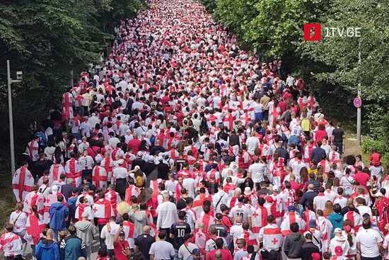 Колонна грузинских болельщиков перед игрой в Гамбурге