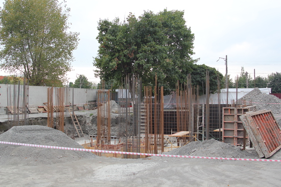 ладно, в общем несколько фото с сегодняшнего дня. спортзал. выглядит неожиданно, накрыт такой металлической конструкцией для консервации зала. вид не окончательный, но что-то уже понять можно.