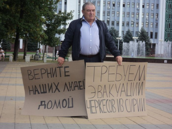 Сегодня, 23 сентября, одновременно в России (в Москве и Майкопе) и в нескольких городах, где проживают черкесы диаспоры - Анталии, Анкаре, Уэйне - были организованы пикеты, участники которых ставили своей целью привлечь внимание к проблеме эвакуации сирийских черкесов на родину. В Москве пикет, разрешенный мэрией, прошел возле памятника Героям революции 1905-1907 гг. В пикете участвовало около 70 человек.
