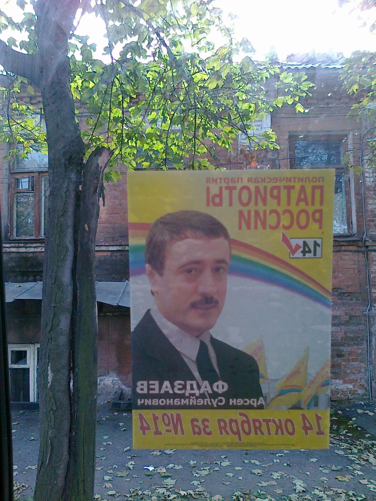 город весь абсолютно заклеен политической рекламой, очень навязчивой. надпись "Патриоты России" на заднем стекле легковых машин встречается чуть ли не чаще, чем "продаю". каждое дерево, каждый угол, не говоря уже об остановках и тд... кстати, судя по тому что вижу маршрутчики поддержали Фадзаева, потому что они все в этой рекламе, либо "Патриотов", либо "Зеленых".