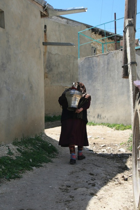 На окраине села стоят люди, прижав к уху мобильники – телефон ловит только тут. «Мага, ну че там?» — по-русски кричит в навороченную трубку молодой парень в спортивной куртке. Полная женщина неподалеку от него ходит, держит телефон, как компас, ищет нужную точку, где связь, наконец, заработает. Носятся по кривым улочкам дети. Три старика сидят на бревнышке, щурясь на солнце. Старуха в огромной платке, древняя, согнутая в дугу, тащит на спине полный кувшин воды, а навстречу ей – точно такая же. У второй нет никакой ноши, но руки привычно сложены за спиной, словно поддерживают невидимую копну сена, вязанку хвороста, мешок с глиной, или что там она таскала на себе всю долгую свою жизнь, пока ее не пригнуло к самой земле?