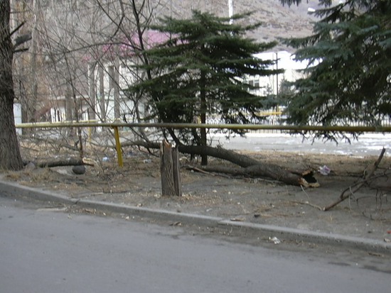 Удачно так "срубило" тополь, труба газовая рядом - могло и перебить: