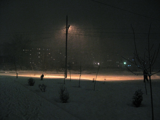 Всё тихо-спокойно, никаких "усилений" не наблюдаю (интеренет очень плохой, правда, всё время выбивает меня в личный кабинет ЮТК, а там минут по 10-15 входить приходится). Людей на улице мало, но это может быть и от холода. Ночью снегом немного припорошило - с удовольствием прям по свежему воздуху прошёлся, пофоткал немного: