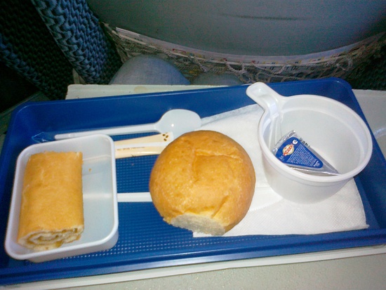 добрался наконец до дома. летел через Минводы на какой-то развалюхе, которая называлась ТУ-134-М. в полете нас болтало как банку, при посадке было особенно неприятно. с моей прогрессирующей самолетофобией это было непросто, даже несмотря на то, что лететь всего 50 минут. самолет действительно потрепанный, наверно мой ровесник. но если мне еще иногда при знакомстве делают комплименты о том, что выгляжу моложе, то этот смотрелся явно старше своих лет. в общем этот "легкий обед" оказался нетронутым.
