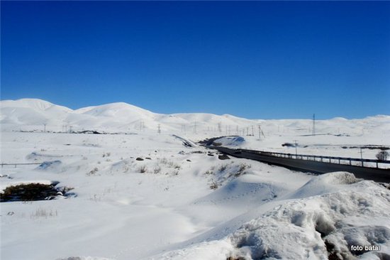 В этот раз нас вез из Еревана в Карабах весьма разговорчивый молодой человек. Потом высинилось, что он из актерской семьи. Я дремал, но периодически просыпался, когда слышал его страстные возгласы: «.. я этот не понимаю совсем», не важно речь заходила о политике или нравах нынешних, в особенности жителей Еревана. У меня так заложило уши от его быстрой езды, что я судорожно пытался сзади связаться впервые в жизни ремнем безопасности, но он был порван! И вдруг пейзажи стали белеть. Вначале мне показалось, что это у меня связанно с кошмарами, но тут он сказал торжественно, и почти с придыханием: «мы на пороге Крыши Мира». Вскоре то, что я увидел, буквально меня потрясло. Железно- охровый ландшафт сменился неземным светом, от которого слепились глаза. Вот она какая Крыша Мира!!! Я прошелся по ней со своим спутником пешком. Холод, и резкий свет от которого слепнешь. Выше белели только облака.