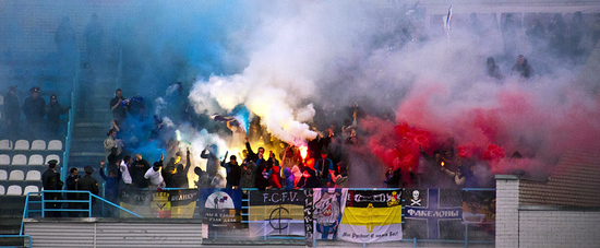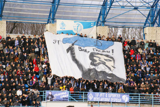 А вот Факела воронежские знатно в том же Брянске пожгли. Вот только одно интересно: неужели обилие имперок на решетке блатнее, нежели обилие баннеров с родными цветами? Я, конечно, понимаю, что сейчас модно показывать свои политические взгляды и так далее, но неужели одной имперки недостаточно? Завесь ты решетку цветами, сектор круче и красочнее будет смотреться же.