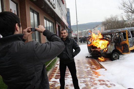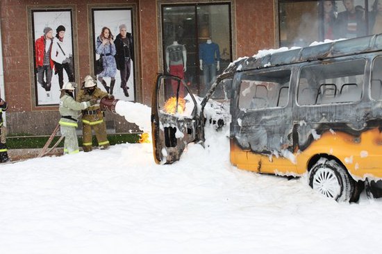 6. Утренний переполох или "Пенная вечеринка" в Дагестане - красочный фоторепортаж с тушения маршрутного такси в Махачкале от Мурада Магомедова.