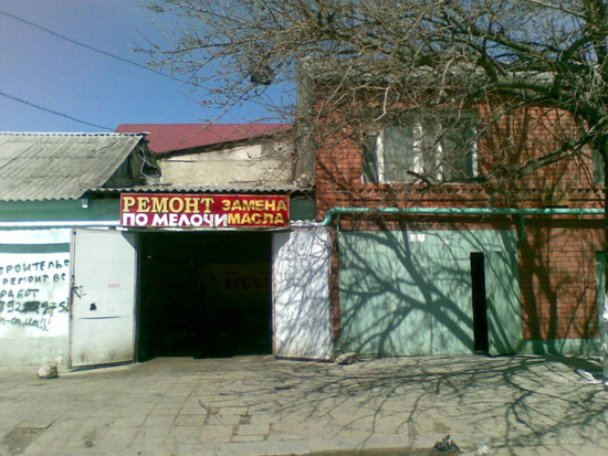 Ремонт автомобилей "По мелочи". Угол Ярагского - Нурадилова. Видимо оттуда выехал тот автомобиль из бегущей строки: "состояние - НАХАДУ".