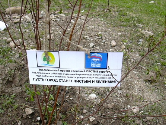 Не в том прикол, что под эгидой "ЕдРо" всё происходит, а в том что у нас в поликлинике, например, напрягли слесарей под этот лозунг (они и в КПСС-то не состояли в молодые годы, а тут... но работают - самим нравится городок облагораживать, говорят).