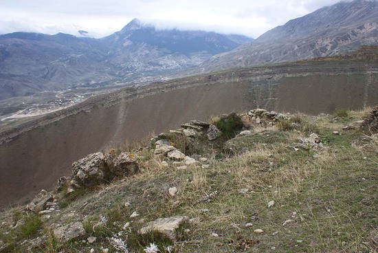 Вдоль всего склона в направлении Тандо нарыты и выложены камнями окопы.