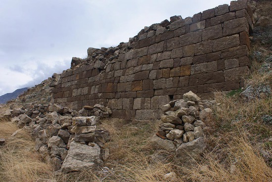 На одном из участков серпантина стена выложена не просто из камня, а из вытесанных из камня кирпичей. Было бы очень интересно узнать, для чего эта стена предназначалась. Может просто заложено место обвала, но тогда почему только тут такие кирпичи, а не просто камни, как в других местах? Может быть у стены была какая-то другая функция?