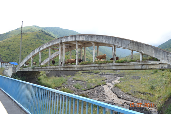 по-моему это красиво. старый мост в районе села Чми, что на военно-грузинской дороге, по которому сейчас ходят только коровы. но ведь среди них тоже, наверняка, есть любители красивого.