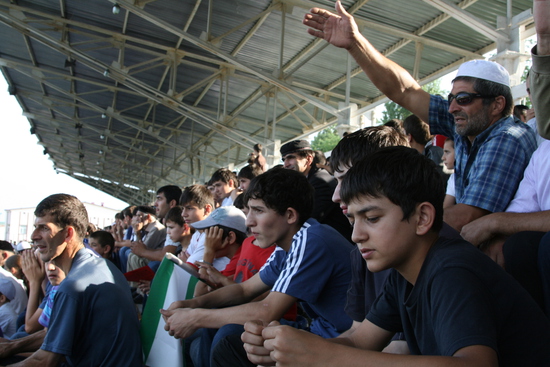 Мало того, что я прямо как никогда чувствовала голую кожу ниже колен (хотя зря), так еще и блин гендерные эти заморочки на меня как-то разом упали. А в остальном - хорошая публика. Кричали громко, стучали и хлопали, не матерились (по крайней мере, по-русски) и намаз совершали прямо на стадионе у трибуны. Добропорядочные мусульмане.