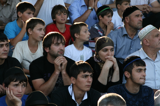 Но когда мы уже выходили из назранского стадиона, на выходе я видела двух девушек моего примерно возраста, ярко накрашенных, в нарядных платьях по колено и - понятное дело – подчеркивающих все прелести молодой фигуры. Нет, я не думаю, что в Ингушетии живут только "правильные" девушки. Я видела очень мало женщин, и, кажется, все они были в косынках, но за непокрытую голову, думаю, никто штрафовать не будет. Другое дело – мнение родных, соседей, друзей и т.д. Но размышлять тут о тонкостях кавказского менталитета не буду - опыта маловато. Скажу только, что в Ингушетии я почему-то чувствовала себя очень голой. Прямо бесстыдно как-то голой. Это такое странное ощущение – как будто в церковь в джинсах, майке и без платка заходишь. Вроде как и понимаешь, что это не главное, но все равно - неловко.