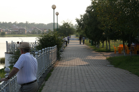 Да и Назрань оказалась каким-то очень светлым городом, с красивой белой набережной, кипарисами и по самое не горюй окольцованным стадионом. И девушки-полицейкие в юбках по колено, проверяли у меня сумку, были красивыми и улыбались.
