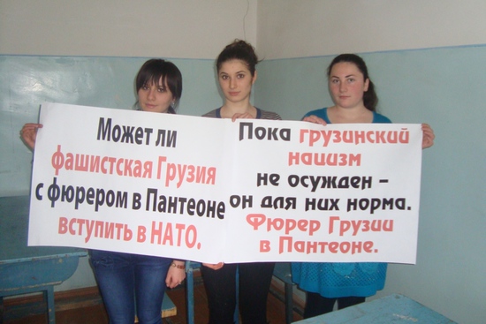 На уровне официальном, покритиковать действия Кирилла и Илии II особо не осмелились, и как всегда, и общественность спасла положение. Несмотря на каникулы, активисты студенческого движения совместно с преподавателями. Они организовали акцию протеста против действий церквей России и Грузии и выступления Саакашвили 21 января с.г. на Парламентской Ассамблее Совета Европы, под стенами сгоревшего в последней войне с Грузией, Университета. Это акция сказала мне ее инициатор, преподаватель Фатима Маргиева, напоминание, о том, что Илия, был одним из тех, под чьим покровительством в Грузии был установлен фашистский режим, официального осуждения, действий которого нет до сих пор. А раз не было, значит и сегодняшнюю власть в Грузии, можно считать приемником режима Гамсахурдия.