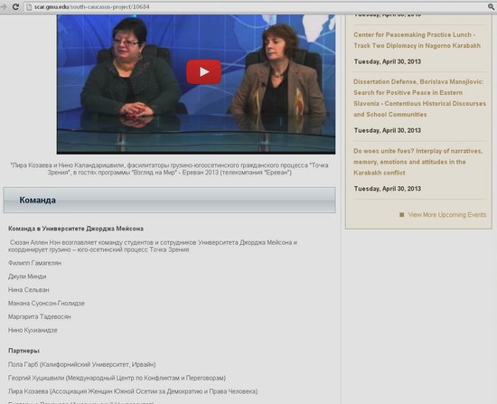 Наверно Дина Алборова, не имеет доступа к этому информационному ресурсу, иначе бы она не говорила что осетино – грузинских проектов нет. Это, конечно же, недоработка, в плане информирования, а может и хитроумный ход, американского Университета Дж. Мейсона! Недаром Президент Тибилов предупреждал наши НПО, что они могут стать «объектом действий недружественных нашему государству сил».