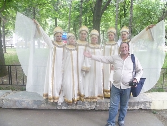 Вернее я не прошел стороной! В городском парке Ростова, а я оказался в этот день именно там, готовились концерту и я не преминул посетить его, а после концерта, сфотографироваться с участниками. А имено, с замечательным хареографическим ансамблем "Лебедушки"!