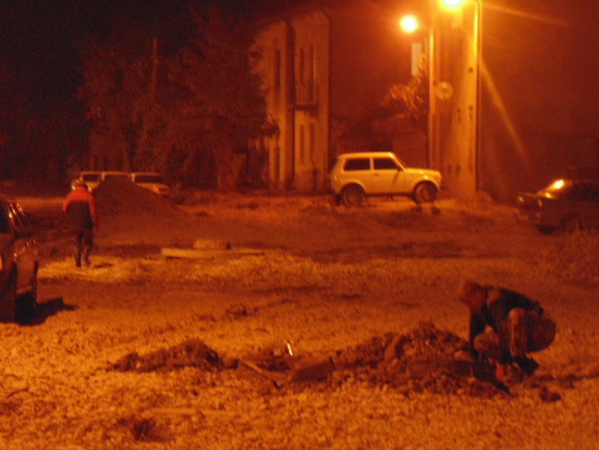 Нашу улицу усиленно ремонтируют всю вторую половину лета. Сначала ее перекопали газовики, потом водопровод-канализационные сети рыли траншеи. И вот теперь дорожники, сняли многочисленные слои асфальта и даже грунта и улица стала ниже почти на метр. Тпереь второй день, ее засыпают гравием. Но сегодня случилось чудо, нашу улицу осветили. Впервые, за много-много, ну лет двадцать пять точно. Приехала такая спец машина электриков, как же она называется, такая стрела с корзинкой, и за несколько часов установили аккуратные лампионы на каждом столбике. "Будут в ночь работать, что бы успеть к холодам" – заговорили ворчливые соседи. И в самом деле, уже десятый час, а за окном ….