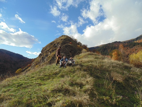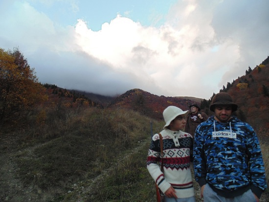 Выходные были поистине осенними - то солнце и голубые небеса, то тучи туман и мелкий дождь. Прекрасная погода для похода. Поход был совершен в родные места - ущелье Мугут дон, над самым Хвце, нашим родовым селом. Пошли вчетвером. Мой сын Инал, племянник Барсаг, брат Сармат и я.