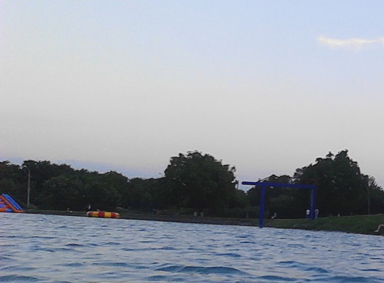 Там вдали аттракционы, плавающие конструкции типа батуты. К ним подплыву на днях.