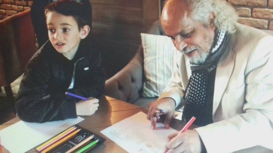 А маленьким художникам маэстро Омар дал мастер-класс, прямо в кафе, куда зашел пообедать. И был от них в восторге.