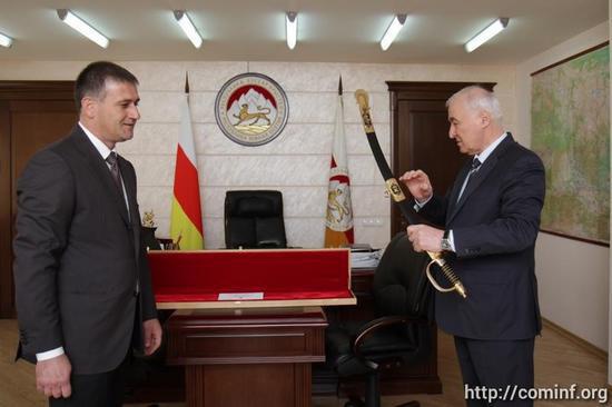 Поздравляли многие, и даже подарки преподносили. Какой же День Рождения без подарков!? Председатель Федерального Собрания Российской Федерации Валентина Матвиенко, воспользовавшись оказией, в виде встречи с Парламентской делегацией РЮО, передала нашему Президенту шашку! Она конечно женщина с юмором. Ой, не снести головы тем, кто будет препятствовать Харитоновичу в деле "дальнейшего успешного выстраивания двусторонних отношений и упрочения стратегического союзнического партнерства России и Южной Осетии". Так наверно следует трактовать этот подарок. У парламентариев свой язык, кроме просто слов, - язык подарков, в их числе.