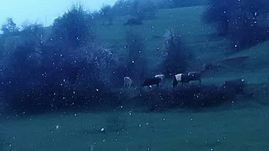 А в моём родном селе Хвце, так местами припорошило.
