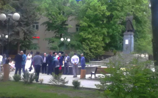 А вообще-то на Вечный огонь заезжают молодожены, в Церковь тоже. Но так что бы на нашу центральную площадь – не особенно. С площади, молодожены и сопровождающие, проследовали к скверу Коста Хетагурова. Может они решили посетить Фатиму, и пожелать, что б никогда больше не было столь драматических судеб у наших молодых невест. В любом варианте красивый обряд - почаще бы мы его видели!