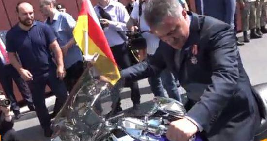 Да что там районы - сам президент проехался перед трибуной, на мотоциклете, подаренном Хирургом. Хотя для чего президенту мотоцикл? Да еще такой дорогой? Понятно, что он его передаст мото-клубу, но ведь можно было прямо Мотоклубу его и подарить. Мотоклуб, у нас, кстати, очень даже достойны!
