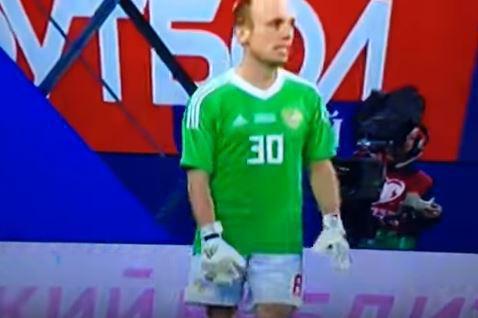 Только потом узнал, что игравший вратарь получил травму (к счастью все обошлось сотрясением мозга и раной лба), а так как возможности замены у России уже не было, в ворота послали встать полевого игрока, надев на него экипировку Габулова, в том числе и вратарский свитер. То же неплохо. Сначала футболка и перчатки на поле появилась, потом, гляди, и сам Габулов появиться.