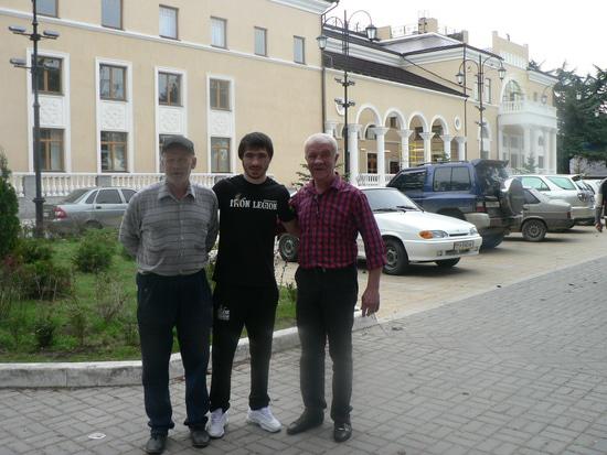 Но наши любители бокса уже фоткаются с теми кто приехал - а это наши земляки Сослан Тедеев, Таир Келехсаев и тренер Алик Тедеев.