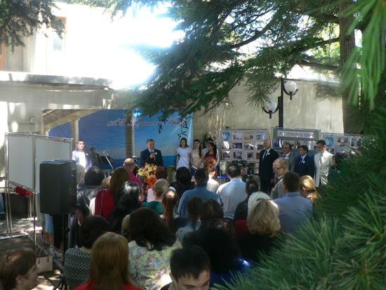 Сегодня в Пушкинском сквере или в сквере у Пушкина прошло торжественном мероприятии, посвященном дню рождения Александра Пушкина, Так его окрестили в прессе, но мне кажется, этому действу, всё-таки, более подходит словосочетание Торжественное собрание или даже Пушкинское Собрание . Если конечно не загонять «великий и могучий» в рамки, навязанные советской бюрократической машиной. А так, само по себе, слово «собрание» вполне пушкинское и отражает, то что происходило.