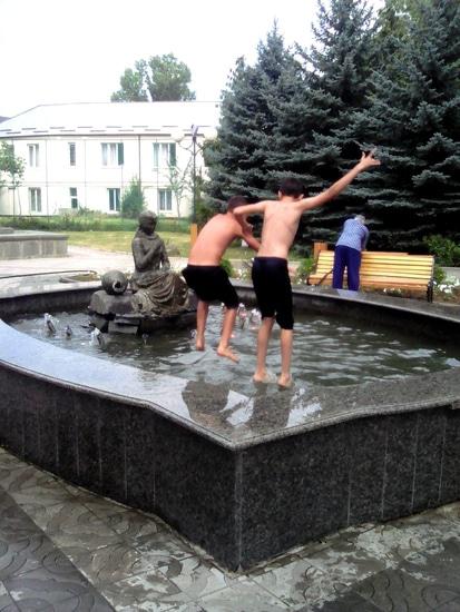 А детвора не прочь поплескаться в фонтане. Правда, ребята попросили не снимать их лица, что б родители не ругались, если они вдруг, увидят этот блог.