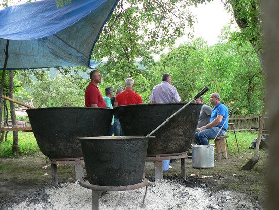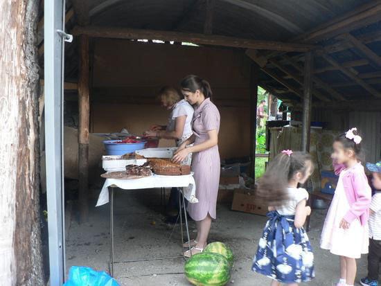 У женщин на кухне еще кипит работа, а у поваров рядом с котлами с мясом уже все готово.