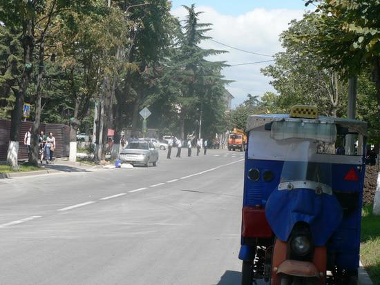 Тут завыли сирены, замигали мигалки, защелкали и забубнили мегафоны - проехала колонна. И тогда я понял - это репетиция. Репетиция встречи высоких гостей ожидаемых на 26-е августа, на День нашего Признания. День, когда нас признала Россия за что мы и ей и признательны.