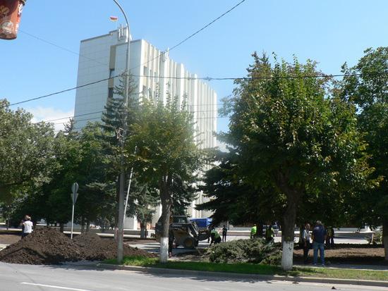 Думаю, может какой гость приехал. Но нет – тут же, рядом, у Зала торжественных заседаний, бывшего "хореографического" идут земляные работы. Значит для торжественного приема пока еще не время.