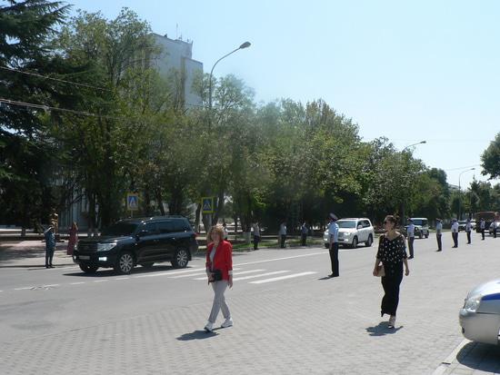 Вышел на улицу, а на ней стоят гаишники. Просто стоят, думаю: может знак какой поставили - типа поворот запрещен. И теперь они ловят нарушителей. Спросил, говорят - нет, просто стоят. Просто так не стоят. Иду выше, Театральная площадь перегорожена ГАИшной машиной. И на самой площади стоят молодые люди в форме МВД. Так торжественно стоят, правда солнце припекает.