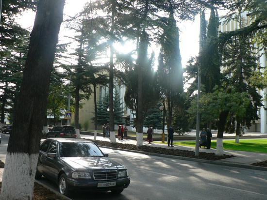 Ожидая приезда Президента вместе с другими, жаждущими его увидеть, я разговорился с пожилым человеком. Им оказался беженец из Западной Грузии, с княжеской фамилией Сидамонидзе. При чем Важа, беженец еще первой волны, что само собой удивительно. Тогда большинство покинувших Грузию, выезжали в Северную Осетию. Важа, герой войны 2008 года, рискуя жизнью, спасал душенобольных - пациентов Психбольницы. Говорит что его, как в кинобоевиках, взрывной волной выкинуло в дверной проем, как только он отвел последнего больного в безопасное место, и вернулся в здание больницы, за какими то, еще, вещами. Важа, получил паспорт РЮО, а вот российский никак не может, хотя с 90-х живет в РЮО. Живет то живет а вот дома у него нет, он снимает жилье. Я подумал, подумал: и на самом деле, кроме Анатолия Ильича, такие проблемы никто не возьмется решать.