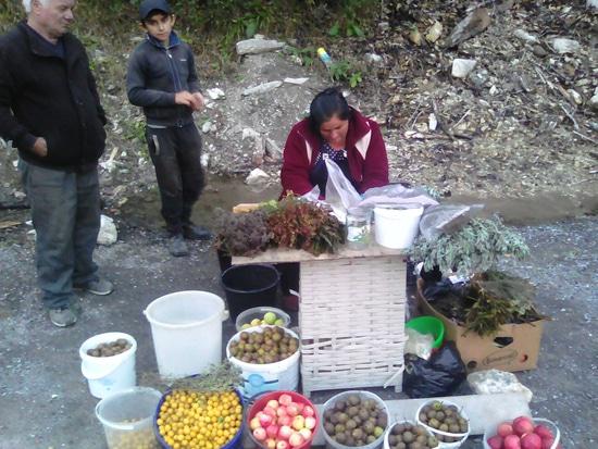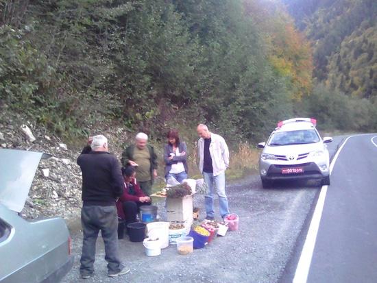Наши дороги последние годы ремонтируются, приводятся в порядок. Но дороги, это еще и инфраструктура, в том числе и общепит и торговые точки. Недавно, на одной из наших трасс, появился такой необычный объект. Объект, конечно громко сказано, на самом деле семья живущая в придорожном доме решила пополнить свой бюджет а заодно поправить здоровье покупателй, торговлей дарами леса и альпийских лугов. Здесь прямо на обочине, можно купить и целебные травы, и полные витаминов дикие груши, сливы, и даже грибы.