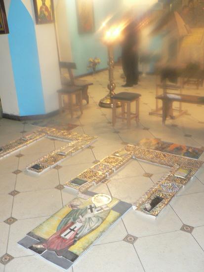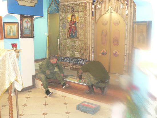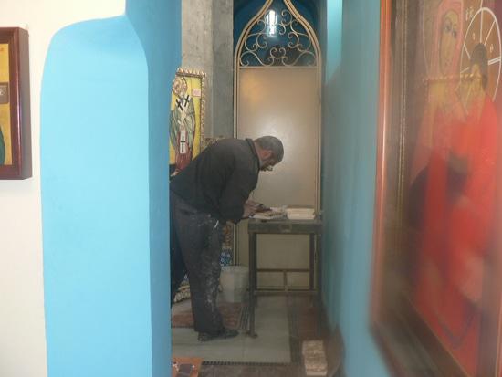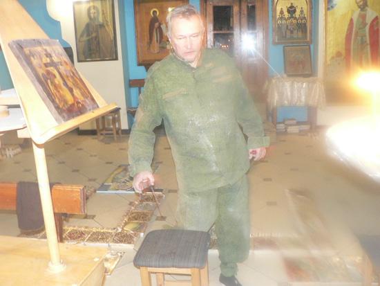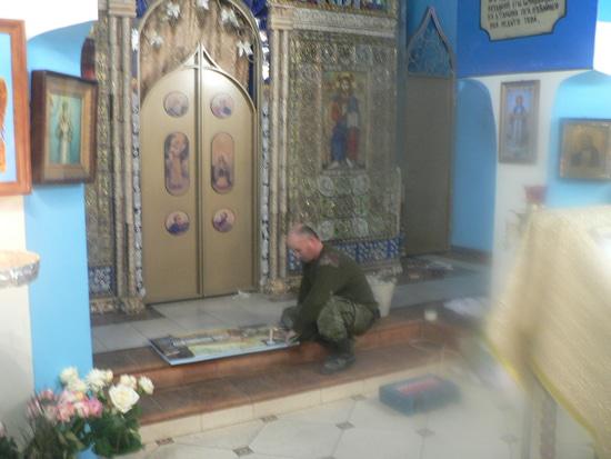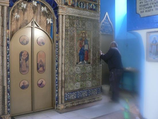 Давно хотел спросить наших священников, откуда появился в нашей соборной Церкви, такой роскошный, просто изумительной красоты, Иконостас. И вот буквально вчера захожу в Церковь, а там не только священники и прихожане, но и художник и мастера устанавливают иконостас, вернее те его, боковые части, которые еще не были установлены. Фотографирую заодно и спрашиваю. Оказывается наш иконостас уникальный, сделан он по очень сложной технологии, фарфор, эмаль, все это подвергается многократным обжигам с наслоениями. Целая наука. Есть еще один такой, но поменьше, в Сербии. По окончании работы наш иконостас будет включен во всемирный каталог. Но результат просто великолепный. И рисунок сам очень трогает. Художник, Антон Перов, он и главный технолог, в общем автор, делал наброски в соавторстве с нашим, отцом Яковым. В установке, Антону помогают, а заодно и учатся, перенимают опыт, вдохновляются, наши мастера.