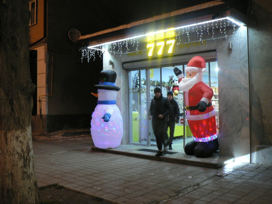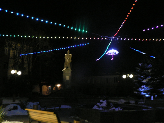 Просто, в общем, город несколько скромнее украшен, чем в былые времена. Скорее всего, средства бюджета, выделяемые на праздничные оформления, был потрачен на Десятилетие признания РЮО Россией. Ну, мне так показалось. Как бы то ни было к Новому Году город Готов