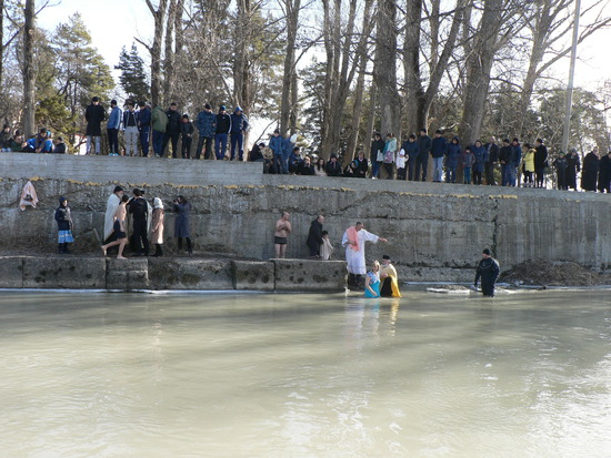Крещение на Леуахи в Цхинвале. Это конечно Великий Праздник, и я прошу, окунаясь в воды Святой реки, у Господа, что бы омовения бывали в ней не только в день Водосвятия, но и в обычные дни. Что бы вновь, новым летом, как и сотни лет, омывались в ней жители Цхинвала, не боясь грязи смердящей и нечистот. Что бы дал Он, силы и разум нам, и не только сам очищал и освящал воды ее, но и наши коммунальные службы, и оные службы у людей служивых помогали бы делать Ему это.