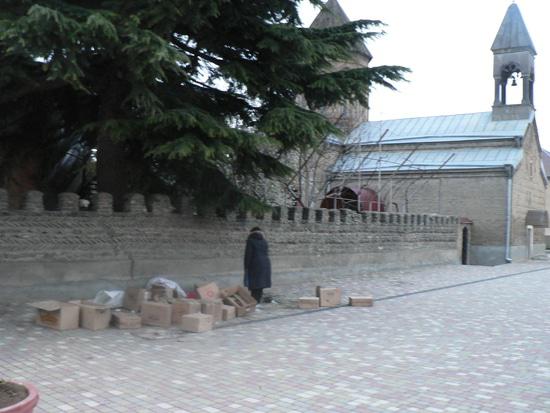 И если вопрос, правильно ли использовать самшитовые веточки или нет, еще в какой-то степени допускает дискуссии, то вопрос о том, можно ли после себя, заработавшего оставлять вот такое - никакого спора не допускает. Горы непроданных веток вербы и самшита и пустая тара у Церкви.