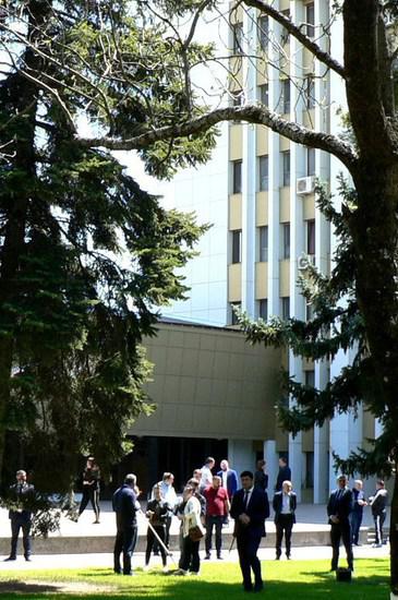 Сегодня страстная пятница, с утра решил ничего не писать, Но гуляя по скверу Коста, заметил суету и группу людей на зеленом газоне, подошел поближе и рассмотрел спортивного сложения ребят в черных костюмах застывших в типичных позах госохранников. Это они и были, а вот и Президент. Беседует с кем-то, под елкой. Я решил эту сцену, все таки сфотографировать. Потом еще с кем то. Кто-то из сопровождавших, взял грабли и стал убирать газон. Я решил, что это что-то типа субботника, но сегодня, вроде как, не положено заниматься работами связанными с землей. К тому же Анатолий Ильич, продолжал беседовать то с одним то с другим из допущенных к нему, вот к нему уже подошли мужчины сидевшие в сквере. Может это приём, такой, на свежем воздухе. Вечером посмотрим по ТВ, не зря же, все это время, возле Президента «стрекотала» камера. А из меня, папарацци, видно - никудышный.