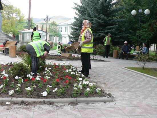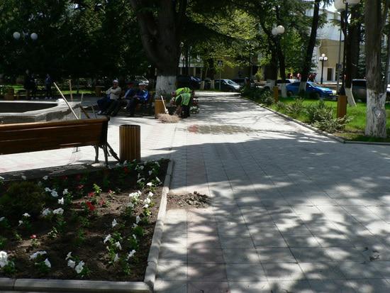Для этого, предварительно, в сквере вскопали клумбы. А вот, для чего перекапывают каждый год газоны в городе, я не могу понять, и не смог добиться объяснения этим действиям у городских чиновников. Там же уже растет трава, ее коси регулярно триммером, и получается прекрасный газон. А его перекапывают и получается уродливо и грязевые -земляные потоки во время дождей.