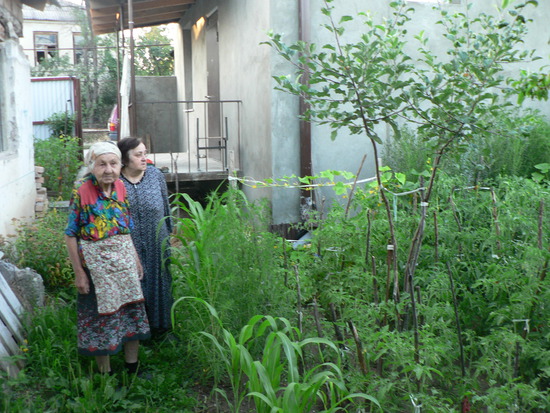 А сад у них просто заглядение – оразцово показательный, Как такие хрупкие женщины, одной уже далеко за 80-ть, это все обрабатываю - непонятно! Полностью обеспечивают себя и родственников помидорами, лобио, перцем, зеленью, фруктами даже вино делают. Помощь у властей не просят – спасибо, что помогли дом отстроить, но поощрить как-то, наших трудолюбивых пенсионерок, столько невзгод переживших, было бы неплохо.