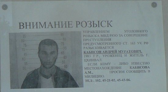 Второй раз уходит у наших правоохранителей - Андрей Кабисов, по кличке Гутон (Плуг). Прошлым летом, находясь под следствием, ложкой и гвоздем выскреб, буквально распахал, раствор вокруг камня в стене, и вылез на улицу, со стороны неохраняемой стены здания МВД. Прямо сюжет «Побега из Шоу-шенка». Вчера все развивалось по сюжету, уже совсем крутого, боевика. Кабисов, и его сообщник Сармат Габараев, отстреливаясь, ушли от группы сотрудников МВД, которые по информации, проводили оперативно-розыскные мероприятия по задержанию подозреваемых в совершении особо тяжких преступлениях. То есть не просто ходили по селу, Залда, Цхинвалского района, но, наши силовики, были готовы к встрече с бандитами. Тем не менее, по словам прокурора Республики, Джагаева, тяжело ранив двух милиционеров, преступникам удалось скрыться с места инцидента.