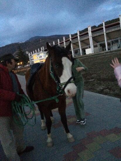 Я. Ну как, Малыш – может поедем? Тихо, медленно я буду держать лошадку?