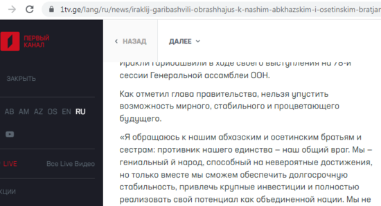 Да вот, с речи Гарибашвили. Премьер-министр Грузии с трибуны Генассамблеи ООН коснулся проблематики Южной Осетии, назвав ее по традиции «территорией Грузии по-прежнему оккупированной Российской Федерацией», не произнеся непосредственно наше название. В то же время, часть его речи журналисты обозначили как «О самопровозглашенной республике Абхазия».
